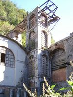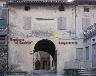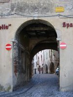 il meschio scende a Serravalle per una stretta su cui incombono i resti del vecchio cementificio che per primo in Italia produceva il cemento idraulico. Quella zona anticamente venivano prodotte le migliori spade d'europa, dopo quelle di Toledo. Si puņ scendere a Serravalle anche per Via Roma attraversando il Ponde della Muda, o dalla stretta per la porta dello Spalto